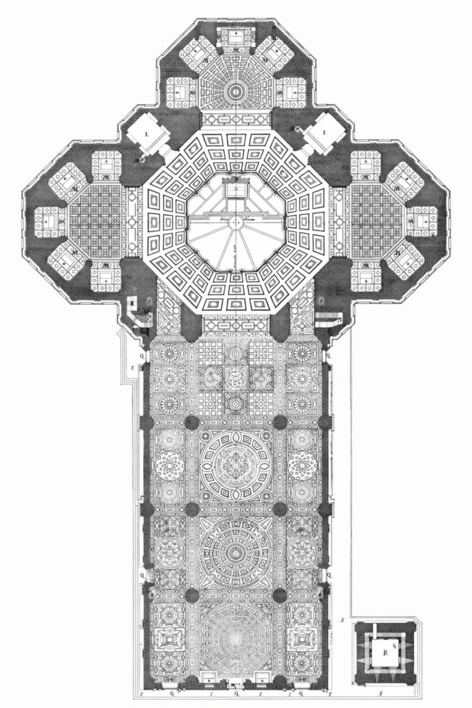 The most radical decision was embedded directly into the plan: an enormous octagonal crossing, designed to carry a dome larger than anything constructed since antiquity. At the time of its approval, no known method existed to span such a space in masonry. For more than a century, the cathedral stood incomplete, its crossing covered by a provisional roof, a permanent reminder of an unresolved architectural problem looming at the heart of the city.
