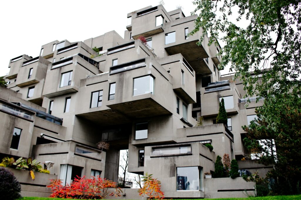 Instead of dark, interior hallways, Habitat 67 features open-air walkways that connect the various levels. These “pedestrian streets” were designed to encourage neighbors to interact and socialize outdoors. They offer stunning views of the Saint Lawrence River and the Montreal skyline.